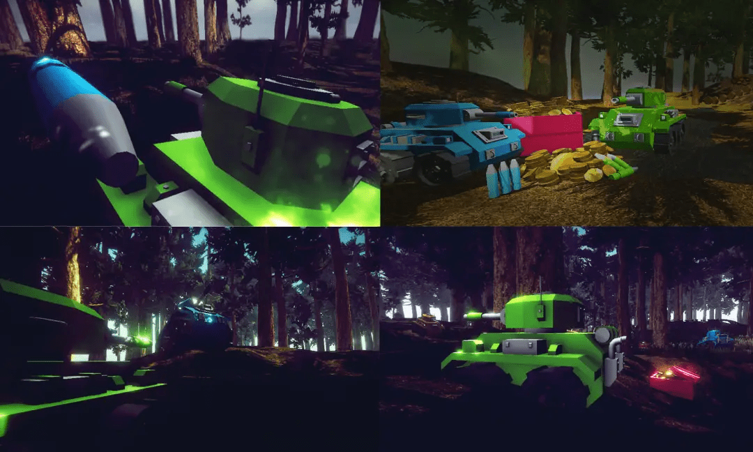 The visual experience of TANKSHOOT is defined by a unique blend of performance-driven design and atmospheric depth. The project features Stylized Low-Poly Modeling, showcasing a fleet of custom-designed tanks and interactable props—such as ammunition and treasure crates—meticulously optimized for high-speed performance across all gaming platforms. This efficiency is set against an Atmospheric Forest Environment, where a dense, vertically-aligned woodland utilizes realistic light-play and “god-ray” effects to elevate the semi-realistic aesthetic. To heighten the stakes, Dynamic Combat Visuals integrate vibrant lighting and reactive effects that make the battlefield feel alive and dangerous during active warfare. Finally, the environment serves the gameplay through Integrated Reward Systems, where high-value gold coin crates are strategically placed to guide player movement and naturally cultivate “hot zones” for intense combat encounters.