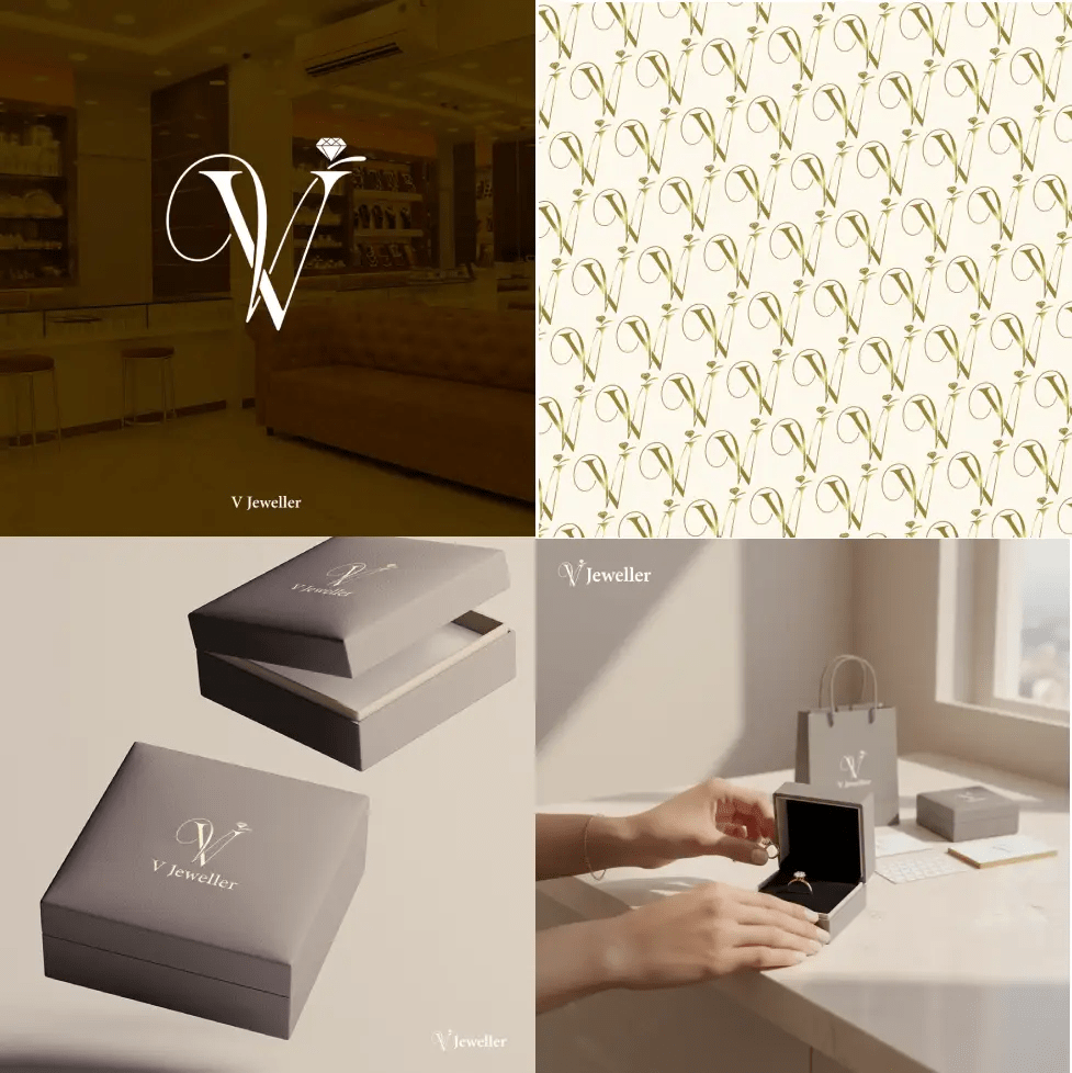 V Jeweller is a premium jewelry brand specializing in high-end, bespoke pieces. The goal of this project was to develop a brand identity that communicates luxury, heritage, and meticulous craftsmanship. By blending minimalist elegance with classic high-fashion cues, I created a visual language that positions V Jeweller as a prestigious destination for fine jewelry.